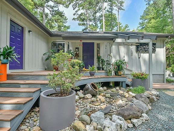 Sought after Ranch Style home located in The Trails neighborhood just west of Chapel Hill NC and UNC Hospital. This spacious 2.87 acre lot is meticulously landscaped and lends itself to low maintenance upkeep. The 3 bedroom 2 bath home includes many updates including kitchen addition in 1995, master bath upgrades 2024, new roof and skylight in 2023, windows replaced 2019, 2nd bathroom walk in shower installed 2012, detached garage (currently used as work shop) roof replaced 2018. Appliances include Refrigerator and Range July 2024, Bosch Dishwasher 2014, Maytag Washer/Dryer 2018. Great functional floor plan including spacious foyer leading to Living-Dining area with vaulted ceiling. Kitchen has breakfast nook which includes custom made table with upholstered bench & stools and custom fit stained glass. Large Family room with exterior door entrance for optional use as an office. The wet bar includes additional Refrigerator and Dishwasher. The exterior grounds are spectacular, including back deck with entry to the kitchen, front deck leading to entry door to foyer and entry door to family room, 2 patio's separated by covered patio and storage closet, gardening beds detailed by mortared rock.