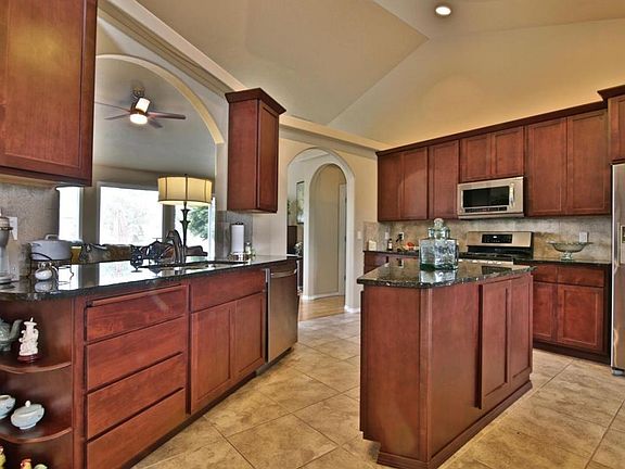 Immaculate home in popular Strawberry Fields. Single level living, private/quiet cul-de-sac setting. Professionally landscaped yard. Every upgrade available included, such as a Chef's kitchen with Solid Granite Counters and gas range, tile and wood floors, and finished 2-car garage. 3 BDRM/2 BA, covered country porch, fully fenced back yard with sprinklers and a large patio.