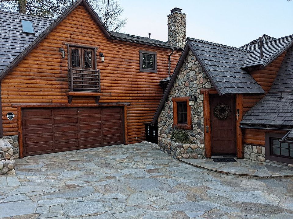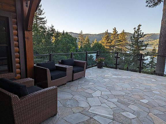 Lake Arrowhead Lakefront Home - Craftsman and Log Style Charm with Stunning Wide Angle Lake and Ridgeline Views. Extensive Remodel - Fabulous open flowing floor plan geared for large families and gatherings with several common areas; Great Room - Family Room - Gorgeous View Sun Room - Billiard Room - Bunk Room - Slate Viewing Deck with BBQ Station-Slate Driveway - Guest Suite and Master Suite on Main Level - Spacious 200' Tram takes you to your private Beach, Pier, and Double Boat Dock. Gated property with 2 Car Garage and generous Parking. Exceptional Beach and Dock Access.