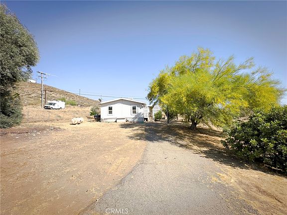 Charming manufactured home on a huge lot in Menifee! Welcome to your new home in the heart of Menifee! This charming 3 bedroom, 2 bathroom manufactured home boasts 1,056 sq ft of comfortable living space and sits on an expansive, completely flat 37,026 sq ft lot. Fully fenced with a large entry gate for your privacy and security. The property is adorned with numerous trees, offering a serene and picturesque setting. You can easily sit for hours in your covered patio watching just enjoying the view and sounds of your land. Conveniently located near Canyon Lake, Menifee Town Center, and both the 15 and 215 freeways, this home provides easy access to all the amenities and attractions the area has to offer. Step inside to discover a wonderful floor plan that punches well above its weight! Kitchen has lots of counter space, huge bar area and seamlessly opens to the living room, perfect for entertaining and family gatherings. Large master bed and bathroom with walk in closet. Convenient indoor laundry area within the kitchen. New carpet! Windows are newer dual pane vinyl! Listed at $400,000, this property is a fantastic opportunity to own a piece of Menifee's tranquil living. Don’t miss out on making this beautiful home yours!