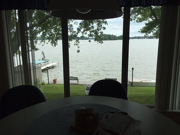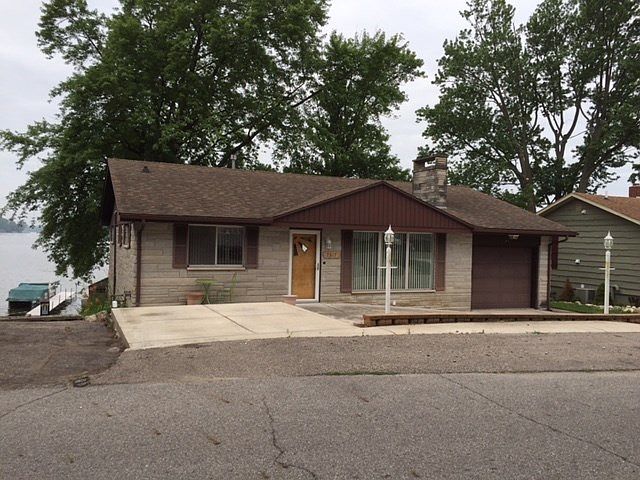 Spectacular views of Lake Manitou from the north shore; 52' water frontage; 2105 SF of living space; Open concept; Nice kitchen w/appliances; Built-in buffet in DR; Stone FP; Finished walk-out basement; Concrete parking