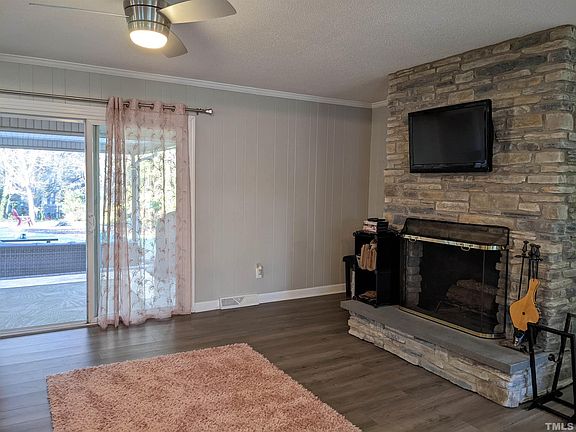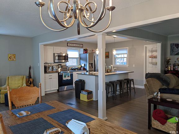 Stunning one level home with beautiful details throughout. Kitchen & living areas are open with wide plank flooring throughout. Kitchen has touch faucet, SS appliances, quartz counters, and large island w/seating. Covered back porch overlooks a new firepit area & landscaping w/garden space. Stone fireplace is functional and wood burning.