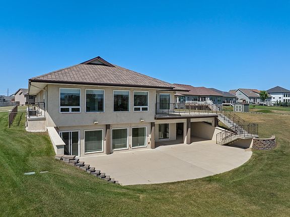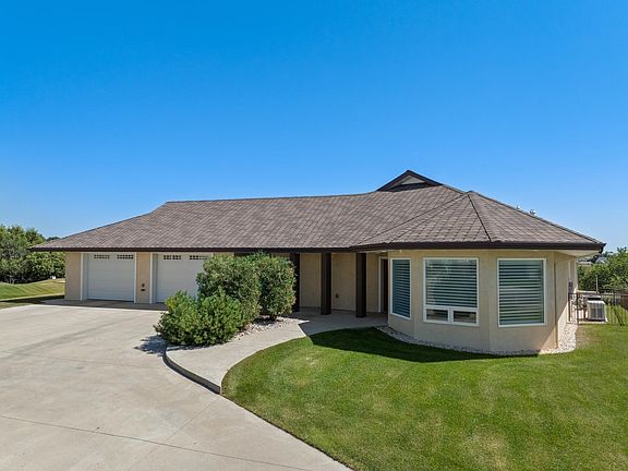 Stunning Stucco Home with Breathtaking Coulee Views. Welcome to this one-of-a-kind ranch home featuring a full walkout daylight basement, offering 5,414 Sq Ft of luxurious living space. This beautifully designed 5-bedroom, 5-bath residence (including one non-egress bedroom) boasts oversized windows that frame gorgeous views from nearly every room. Step inside to discover a beautiful kitchen with elegant white cabinetry and stainless steel appliances, perfect for culinary enthusiasts. The sunroom invites natural light, creating a warm and inviting atmosphere. With three bedrooms on the main floor, a spacious living room, and convenient laundry facilities both upstairs and downstairs, this home is designed for comfort and functionality. The stunning spiral staircase is a true centerpiece, adding a touch of elegance. Downstairs, the expansive family room is perfect for gatherings, and you'll find an additional non-egress bedroom with a shower, along with an apartment-style suite featuring a kitchenette, attached bathroom, and relaxing jetted tub. Outside, enjoy the impressive concrete deck and large patio, ideal for entertaining or soaking in the serene surroundings. Additional features include in-floor heating in the basement bathroom and a Generac generator for peace of mind. Don’t miss the opportunity to make this extraordinary home yours!  Some interior photos have been virtually staged.