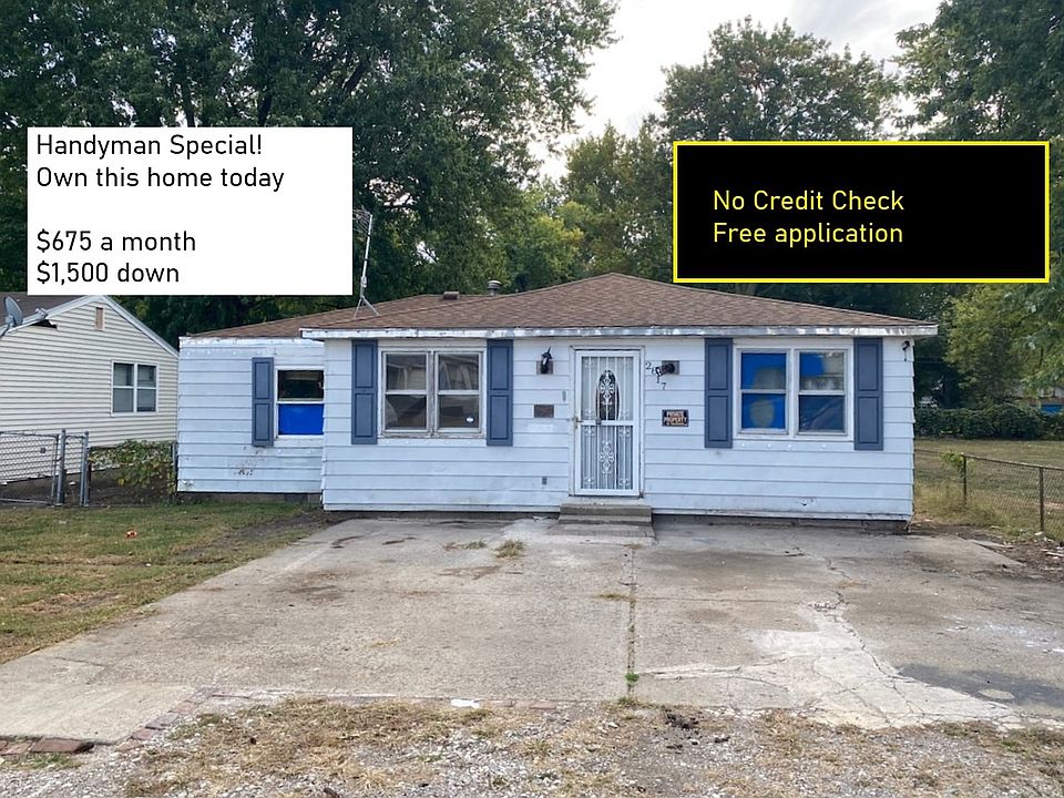 Own this home today for only $1,500 down and $675 a month. Large backyard and a detached garage!