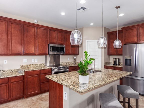 - Kitchen Features: Kitchen Island, Dishwasher, Disposal, Refrigerator, Granite Countertops, Built-in Microwave, Range/Oven Elec, Walk-in Pantry