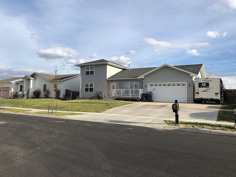 Large, open concept Fox Farm home. Excellent, safe, family neighborhood close to Meadowlark Elementary, parks, baseball fields. One minute drive to groceries, shopping, Home Depot and movie theater. Easy access to 10th Ave. S, I-15 and airport. Nice open floor plan, high ceilings, large vinyl windows. Spacious upper-level master suite with approximately 600 sq feet of living space, master bath and walk-in closet. Main floor features two comfortable bedrooms, one of which is perfectly situated for home office. Unfinished open basement with laundry, large windows and ready for your personal touch: space for large family room, home gym, additional bedrooms (egress windows) and rec space. Plumbing for 3rd bath. Ample storage space throughout. Large fenced yard with sprinkler system. Fantastic, recently updated dual-level composite deck with drip system for enjoying those long summer nights. XL attached drive-through garage with overhead doors on both ends. Very high ceilings and built in storage fir sporting goods, seasonal items, etc. Lots of exterior parking space and extra room for RV parking. Good sized permanent storage shed. Fantastic family home. Contact Jason 406-217-5656 for showings.