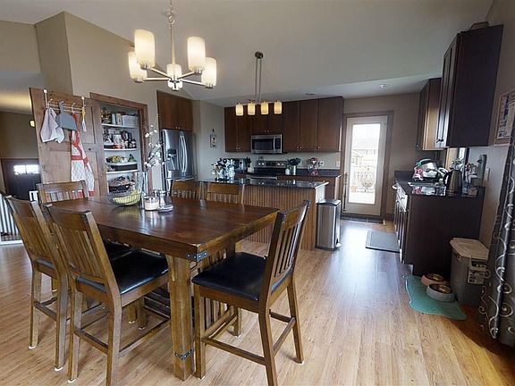 Don't miss out on this quality split foyer in NW Minot's Eagles Landing Addition! This home features upscale finishes throughout with knotty alder solid 3 panel doors, vaulted ceilings, and a neutral color scheme making the hardware and woodwork pop! The kitchen boasts custom cabinetry, granite countertops, stainless steel appliances, large pantry & extended island for extra storage and entertaining. The dining area is open to the kitchen and living room, creating a seamless flow. The living room's custom fireplace paired with gorgeous picture windows not only brings in ample light, but makes this room feel grand. The master bedroom is large and has an en-suite boasting dual sinks, walk-in tile shower, and custom walk-in closet with plenty of storage. The main floor also features a second bedroom and full bath with custom vanity and tile floors. Heading downstairs to the fully finished daylight basement, you will find a large family room with many updates including fresh paint and carpet. There are two more huge bedrooms with a large full bath with custom vanity and tile flooring. Rounding out the basement is a large, finished laundry room with storage. Finally, this home features a 3 stall garage, privacy fence, sprinklers, fire pit w/ additional concrete & recessed light edging, garden spot and a maintenance free deck to enjoy on the beautiful summer nights! Don't miss out on this move-in ready home located just off the bypass for a 20 min commute to MAFB and only a 10 min drive to Minot's shopping districts. Check out the virtual tour here: https://my.matterport.com/show/?m=6D4Go6uACXy then call to line up your private showing today!