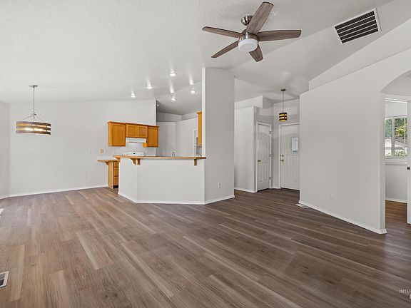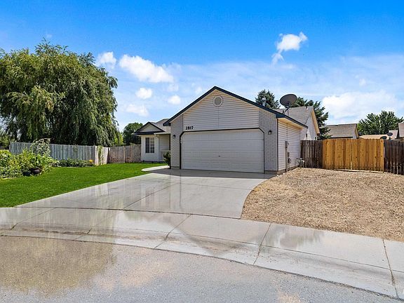 A rare find, affordable home with RV parking, in a great location. Open floorplan with great natural light, spacious kitchen w/lots of cabinet space, breakfast bar seating, recessed lighting. Vaulted ceilings, new lights/ceiling fans, all new LVP flooring, master has walk in closet, jetted tub. Inside laundry room, water softener, nice front porch & a large backyard, 2 car garage w/remote, plus RV parking, could fit 2 RVs on the side. New auto sprinklers front and back. No HOA dues, quiet cul-de-sac in excellent location Great location quick access to I-84 and lots of shopping/restuarants. 5 min to Lakeview Water Park or downtown Nampa.