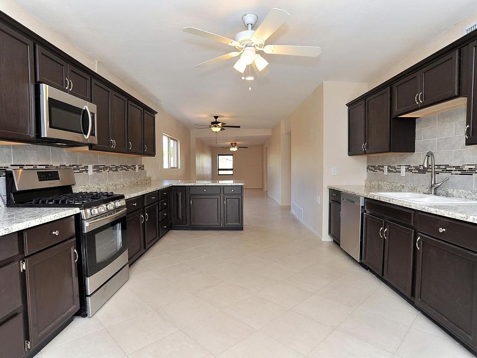 Freshly Updated, spacious, neutral palette Central Tucson Home. Newly painted Interior and exterior. New Ac. New Dual-Pane Windows throughout. Kitchen has brand new Stainless Gas Range, Fridge, Dishwasher and Microwave, Updated cabinets and lots of countertop space. French door in kitchen opens to covered patio. Bathrooms have cultured marble-surround shower. Front room has Mountain Views and Fireplace. Ceiling fans in all rooms. Large indoor Laundry Room! All Tile floor great for AZ climate. 15 Min to U of A. Move-in ready! Must See!