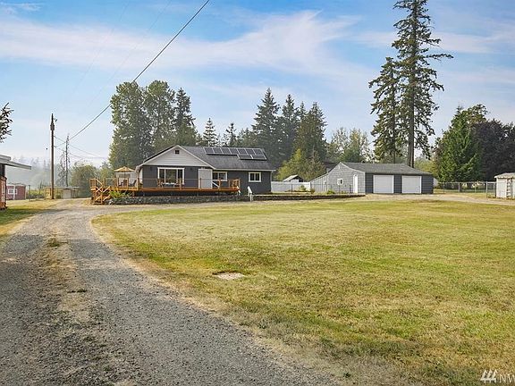 TWO HOMES!!! Stunning setting & location, 2.66ac Erlands point, no-bank waterfront on 5 underlying parcels. Beautifully remodeled main home is 3bd/2ba with a gourmet kitchen, AC, & so much more. Separate 1bd/1ba Water's-edge cottage for guests, in-laws, or rental income (Currently rents via AirBnB for over $2,000/m). 2 massive detached garages that will hold all your toys/projects. The solar panels minimizes your electric bill for both houses. Huge wrap-around deck to relax on after a long day.