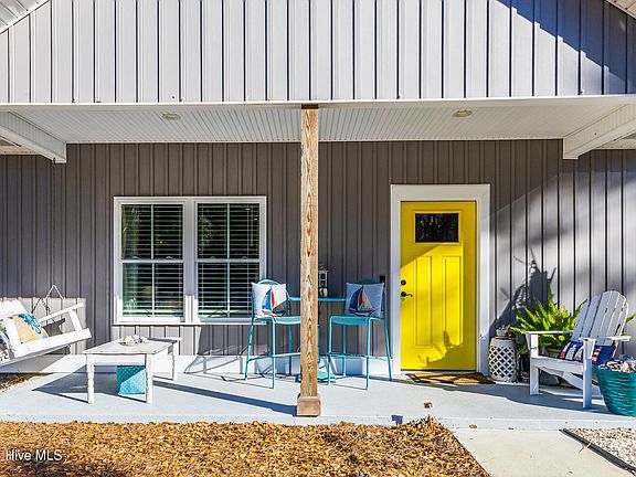 If you're looking for well-built construction and custom details in a home close to the beach, 2817 Paul Andrew St. is the perfect find. This charming three-bedroom, two-bathroom home, built just three years ago by a local, quality builder, boasts the craftsmanship and high-end finishes you're looking for. You'll find Certainteed Lifetime shingles paired with stylish dark grey board & batten vinyl siding for a low maintenance exterior, a welcoming covered front porch with sunny yellow craftsman style door as well as a fenced in spacious back yard. Inside, the details are what makes this home different than other newer construction - In the kitchen: Maple cabinets with soft close and dovetail joints, under cabinet lights, Walnut butcher block countertops, a stainless steel farmhouse sink and an exquisite granite showstopper on the island. Throughout the home you'll see 9' ceilings, LVP flooring, 3 panel interior doors, custom interior trim, black plumbing fixtures and hardware and designer light fixtures (check out that living room fan!) that all contribute to its unique character. Another upscale feature is the custom tile in both bathrooms - a tile shower in the owners bath and tile above the tub in the guest bath - both with custom recessed niches and the guest bath even has a trendy penny tile accent. The laundry room doubles as a mudroom, offering additional storage space, a pantry/closet, and a built-in stainless steel utility sink. If you need even more storage, there's a shed in the backyard, plus extra floored storage space in the attic. Because this coastal cutie is located in Riverside, you 'll have access to the community dock and boat ramp within the community as well as access to the Varnamtown boat ramp with deeper water, just a couple minutes drive. If you're looking for the simple, coastal life, this is one to check out - low maintenance, high quality and easy access to boating and beach life.