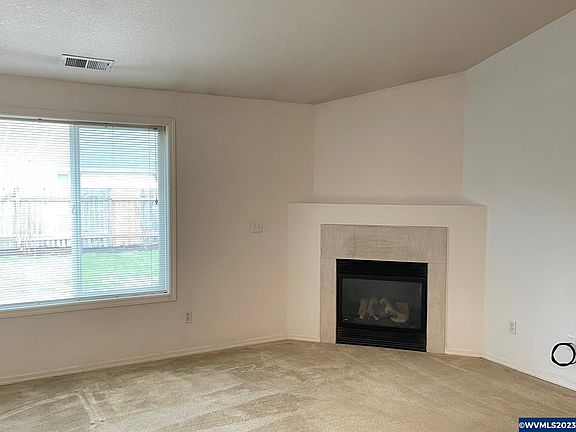 Fantastic single-story home with excellent curb appeal! This lovely 3 bed, 2 bath home boasts a spacious open concept floorplan. Features include a large living room w/vaulted ceilings & gas fireplace, a spacious vaulted kitchen w/tons of oak cabinets & eating bar, and a large primary bedroom w/private ensuite. Great inside utility room w/cabinetry leads to the double car garage. The huge private rear yard is fenced and perfect for entertaining. Conveniently located near I-5 & Woodburn Premium Outlets.