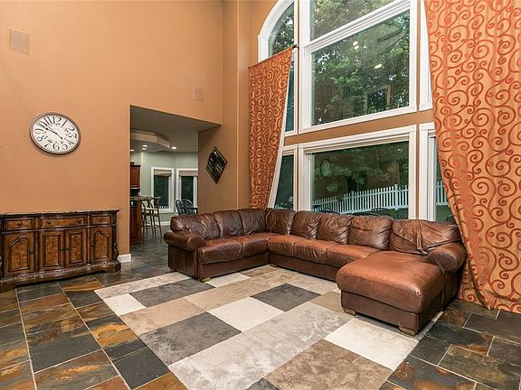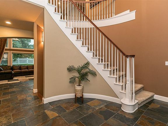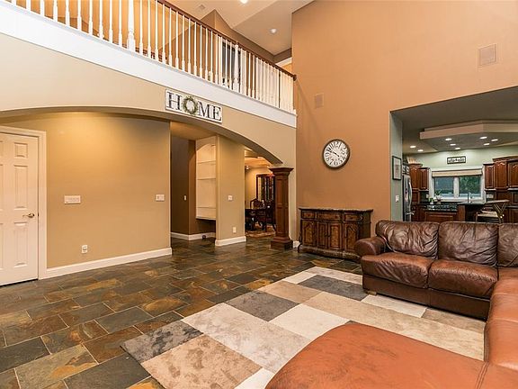 This home is as impressive on the inside as it is on the outside! Enter the grand foyer and a winding staircase takes you upstairs to 3 bedrooms & 2 full baths. The 2nd level features all new carpeting (installing in July). Many parts of the home have been freshly painted. Main level is custom tiled & plank flooring. The kitchen has been remolded & features stainless steel appliances, granite counters, & lots of cabinet space. The great room has high cathedral ceilings, floor to ceiling windows, gas fireplace, & custom built-ins. Formal dining room with wet bar & mutli-tray ceiling. Master bedroom has new flooring, private access to deck, enormous walk-in closet, whirlpool tub, & dual vanity master bath. Downstairs has family, rec, & theater rooms (projector included)! 5th bedroom has brand new carpet & en suite bath. Backyard has new vinyl fencing & a great maintenance free deck. Call today for your private showing!