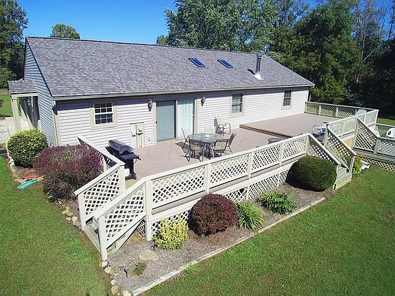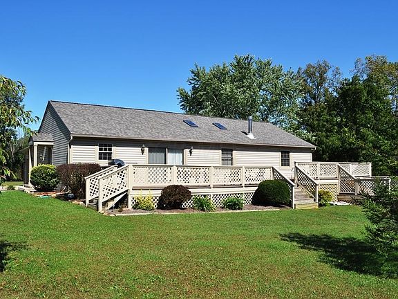 Impeccably maintained inside & out! You'll love all this home has to offer including the newly re-built deck spanning the entire back of the home & leads to the above ground pool-a perfect place to relax & overlook your 3.71 acres OR easily entertain! Inside you'll find a formal living room AND a generous family room complete w/a wood burning stove & stone hearth. The eat-in kitchen offers a breakfast bar, tiled backsplash, doors to the back deck, & opens to the family room. 4 Bedrooms situated on the main floor including the owner suite featuring a private full bath. Convenient 1st floor laundry! Downstairs you'll find a finished rec room w/wet bar & a bonus room (great for fitness space). 30'x54' Outbuilding w/electric AND 2 car attached garage. Newer HVAC. BRAND NEW ROOF & SKYLIGHTS!