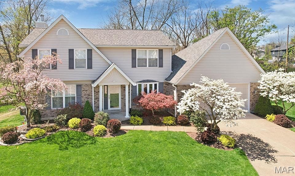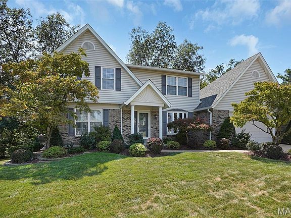 This charming 2 story sits on just under 1/2 acre, has 4 bedrooms, 3 and half baths, zoned heating and cooling, and an oversized 2 car garage with extra height added. As you step inside you'll notice the gorgeous newer wood flooring that flows throughout the main level. The formal living room features tons of natural lighting through the large window with beautiful newer shutters. The great room features updated wood burning fireplace and a bay window with a stunning view of the back yard. The kitchen features granite counters, stainless steel appliances, gas range and tile flooring. The breakfast room features a large window with a view of the back yard. The main level bathroom has been updated! The spacious master bedroom features newer carpet updated bath and a custom closet design. There are 3 other spacious bedrooms, updated full bath, newer carpet and baseboards upstairs. The w/o basement features a gas fireplace, media center, cedar closet, bar sink, extra pantry, sleeping area/playroom, plenty of space for entertaining, and storage area! Central Vacuum System! Relax on the large deck while taking in the stunning park like view. The huge back yard has a fire pit, is partially fenced and perfect for family barbecue's and entertaining. Some updates include HVAC, Roof, Facia, Soffit, Gutter, Gutter Guards, Irrigation System, Cedar Deck and more! Well maintained by the original owners. Located in a desirable area. Enjoy walking or riding bikes on the nearby Katy Trail.