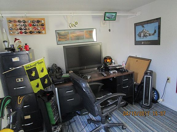 TWO outbuilding's in Backyard One is great for storage,about the size of one car garage. The other one was built for an at home Office. Has air conditioning. Great office, art studio or hobby room. The house has double insulation inside attic. The kind that is laid down, and then also the kind that is blown in for extra coverage. Sprinkler system front and back. Great outdoor covered patio, that is perfect for family parties, and cooking outside. Seller is very motivated to sell!