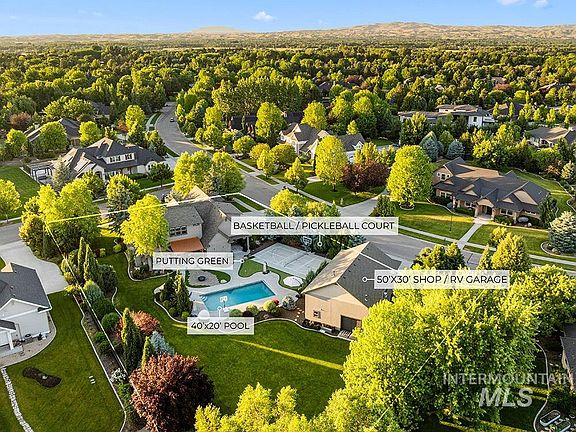 Experience resort-style living in this exceptional, one-of-a-kind estate set on a generous acre corner lot in the prestigious Castlebury West neighborhood. Enjoy an in-ground pool, dual covered patios, pickleball & basketball court, and professionally designed putting greens — all creating a private getaway right in your own backyard. The property also features a fully finished, detached 50x30 shop/RV garage — perfect for RV/boat parking, complete with heating, cooling, and its own bathroom. Beautiful acacia hardwood flooring, soaring 12-foot ceilings, and a thoughtfully designed main-level floorplan set the stage for elegant everyday living. The gourmet kitchen is equipped with dual ovens, microwaves, dishwashers, and an oversized island. Retreat to the main-level master suite, featuring its own cozy lounge with a gas fireplace and direct access to the outdoor oasis. Enjoy effortless open air entertaining with all the outdoor recreation surrounded my mature professionally landscaped grounds!