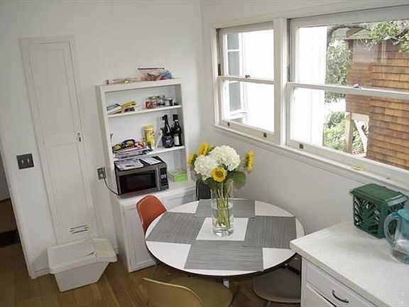 Fully furnished top floor condo with great natural light. 1 bed, 1 bath with gas stove, wood floors and lots of light. The unit is in the Elmwood district with lots of restaurants, shops and public transportation. There is a common outdoor space for the 3 units on the property. Off-street parking available. No extra storage.