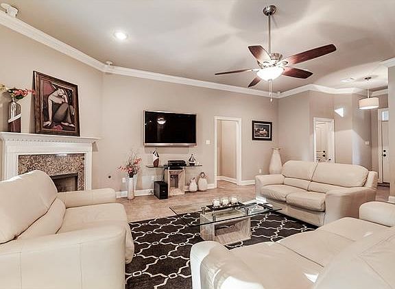 Beautiful 4 bedroom/2 bath home in Villages of Bocage subdivision. Exceptionally well kept with open floor plan. The kitchen has upgraded stainless steel appliances, granite counters with bar, and recessed canned lighting. Tile in Kitchen, Baths, Living/Dining, with carpet in bedrooms. The elegant master suite includes master bath with dual vanities, jetted tub, separate shower, and large walk-in closet. The large fenced backyard has a covered patio with extended slab, and yard backs to greenspace.