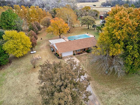 GORGEOUS 10 acre property with 3 beds and 2 full baths in Blanchard. This modern farmhouse will blow you away with its charm. The well kept home sits at the end of a long private drive. In the back you'll find a large inground POOL with a new liner (2019) and a FABULOUS covered back patio where you can enjoy the marvelous views. Multiple trees on the property provide your own little orchard with plums, peaches, apples, and pecans. Yum! You'll also love the huge red barn/shop with water and electric for all of your equipment, toys, and projects! Inside you are greeted by a stunning brick fireplace. The kitchen is light and bright with updated white cabinets, backsplash, and lovely countertops. A beautiful barn door for the closet and full bathroom create a nice little retreat in the master bedroom. With plenty of room to roam and tons of modern comforts, this is a property you don't want to miss!