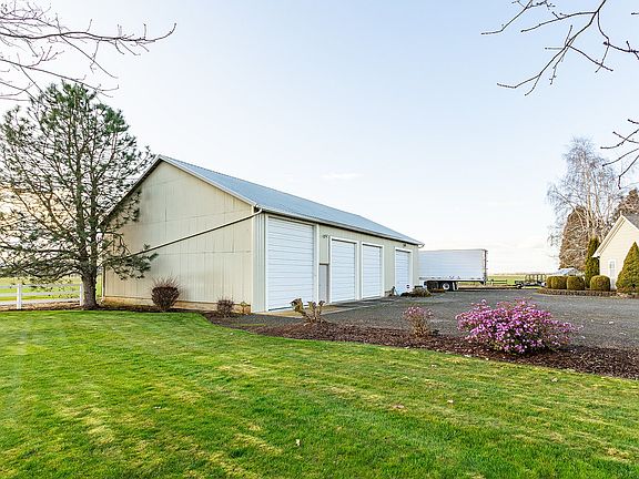 Stunning country property on 60+ acres of farmland. Surround yourself with fields as far as the eye can see. This beautiful 2,676 square foot, 3 bedroom, 3 bathroom home has so much to offer. Enter into the home to an open floor plan. White oak floors in the entryway, dining room & the kitchen. The kitchen features granite countertops, large island, appliance garage & huge walk-in pantry with a pocket door and ample cabinetry. Designated dining area. Carpeted living room with recessed lighting & wood stove. The primary suite on the main level lets in beautiful streaming natural lighting and includes double closets, walk-in shower, soaking tub, double sinks & separate water closet. Two additional bedrooms on the main level, one with glass French doors which could double as an office space. Full guest bathroom on the main level. Upstairs is a huge bonus space and additional full bathroom. Could be a great media room, or another primary suite if needed. Interior laundry closet located downstairs. This home offers mature & beautifully abundant landscaping. New vinyl fencing along the front & E side of the home. The backyard features a pergola over concrete patio great for entertaining. Covered entertaining space as well as an additional concrete patio at the rear of the yard. Glass greenhouse and plenty of gardening space. Automatic sprinkler system. Covered passthrough to 2 car detached garage. Plenty of parking space for RV/boat/trailers & a huge 69'X40' 4 bay shop. Farmland is currently leased.