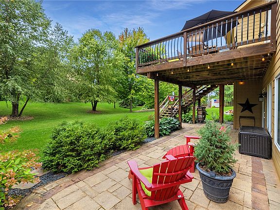 Impressive two story home home offering over 4100 square feet of finished living area and 5 bedrooms/5 bathrooms on a large 0.44 acre cul-de-sac lot. This custom built home sits on an incredible private lot with mature trees and a large usable yard. Located within walking distance of multiple parks, the Raccoon River Valley Bike Trail, and within the Shuler Elementary boundary (feeding to Waukee Northwest), the location of this home is hard to beat! Features include: Huge deck and paver patio perfect for outdoor entertaining, generous kitchen with massive island and stainless appliances, large living room with elevated ceilings and built-ins, generous eat in area, formal dining room, main level office, surround sound, large primary bedroom and bathroom with tiled shower/jet tub/double vanity/skylight/walk in closet, fully finished lower level with wet bar, exercise room, and generous storage. This home is 100% move in ready and flexible possession is available, please call an agent today for more information or a private tour.
