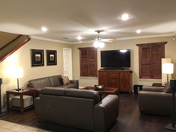The home is located in a quiet cul-de-sac. Open floor plan, granite counter tops, oversized bedrooms, solar screens, tile and wood floors, plantation shutters, water softener, large storage shed and huge back yard. Man cave or game room features a walk-in bar and half bath. It could also be use for a guest room or for a rental with separate entrance. Recently painted and nicely decorated. Asking price $268,000 For more information call 956-523-9472. Serious inquiries with pre qualification letter. 3 Bedrooms (4 optional), 2 full and 2 half bathrooms, Huge Barbecue pit and 2 Car garage attached.