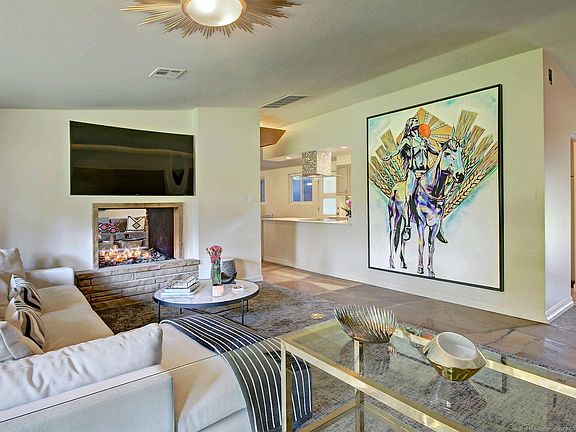 Unique mid-century home with a beautiful modern interior. Updated kitchen and baths with designer finishes throughout. 3 beds, 2 baths, 2 living areas with a double sided fireplace. The home is on a large treed lot on a quiet street.