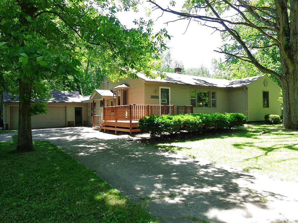 DESIRABLE WOODCREST AREA IN LARKIN TOWNSHIP!! Affordable ranch style home on almost one acre. Front deck and patio area with a fire pit. Mature trees enhance the setting. Two car garage and a full basement. Abundant storage. Three bedroom and 1+ bathrooms. Some hardwood flooring adds to the charm of this home. Brand new water heater. City water at the road. This home has so much to offer!!
