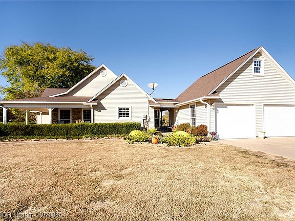 Great country home surrounded by beautiful scenery. Small community living within 10 miles from Ozark and 45 minutes to Fort Smith. Located in the County Line school district, this home features 4 bedrooms, 2 bathroom, open living dining area, fireplace, formal dining area, beautiful rock paths to a large covered front porch, large mud and laundry room with sink, 2 car oversized garage, large detached garage with storm shelter and so much more. This home has been well cared for and is more in ready!! Call to view this property today!