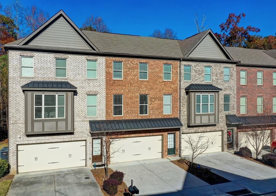 LIKE NEW brick townhome w/ ALL HARDWOOD FLOORS thru out. 2 car garage. 3 bedrms up + bedrm & full bath on FINISHED TERRACE LEVEL. Kitchen w/ breakfast bar, granite counters, stainless appliances & DOUBLE OVENS. REFRIG, WASHER, DRYER STAY! Cozy fireside Greatrm. Private deck overlooks woods. Oversized master retreat w/ en-suite featuring double vanity, large shower & soaking tub. Great location - Minutes to Mall of GA, Gwinnett Stripers, Top Golf, Andretti, 85/985, restaurants & more. Great community with pool & low HOA dues. NO RENTALS allowed per HOA. Don't miss out on this - it'll sell fast!