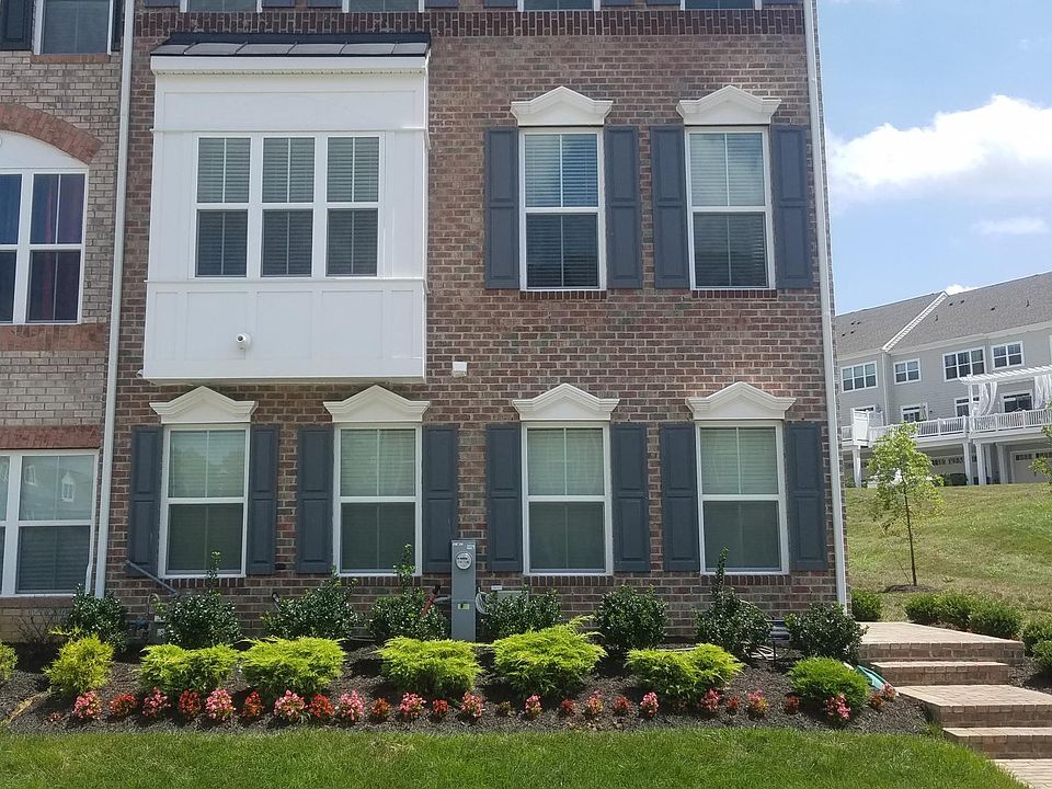 Single family living without the yard work! Lot sits next to common area. Gorgeous three story, end-unit townhouse with four bedrooms, three full and one-half baths and two-zone a/c units. Enter into spacious foyer with wood-like tiled flooring leading into room with en suite bath that can be used as bedroom or office. This level also has a coat closet and entrance to oversized two car garage. An open staircase leads up to the main level with wood-like tiles throughout. The galley kitchen with an extra long granite island and stainless steel appliances anchors the main level and is flanked on one side by a large family room with fireplace and lots of windows, built-in bar/butler's pantry and entrance to large low maintenance deck with trellis. On the other side of the kitchen is a second sitting area and dining room. This level also has a spacious powder room for guests. A large palladian window leads up to the top level which boasts of a large master bedroom with cathedral ceiling, fireplace, two walk-in closets and linen closet. Master bathroom has two vanities, walk in shower, soaking tub and separate room for toilet. Two additional rooms with closets and lots of light, hall bath and laundry closet finish off the top level. All bedrooms have ceiling fans. Renter responsible for utilities - gas, water and electricity. Deposit equal to one month's rent and first month's rent due at lease signing. No smoking and no pets allowed. Use of community amenities included in lease.