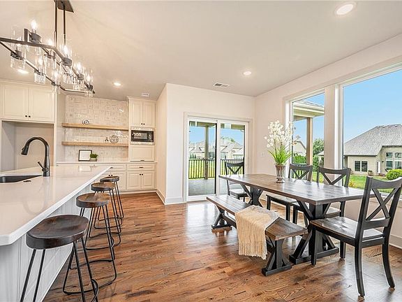 Beautiful Reverse 1.5 plan with very spacious rooms, spectacular trim work and openness throughout. Four bedrooms, 3 full and one half bath. The kitchen offers a spacious island, granite countertops and walk in pocket office / pantry, as well as a mud bench off the kitchen. The covered deck has an exterior fireplace & this lot can be fenced. Lower level features a family room, 2 bedrooms and a nice wet bar. Enjoy walking out to large level yard & patio. Staley Farms is the destination spot for hundreds of families looking for quality of life in both recreation and education. From the golf course, zero entry pool, indoor basketball court, exercise rooms, tennis & volleyball courts, and of course Staley High, we have it all!