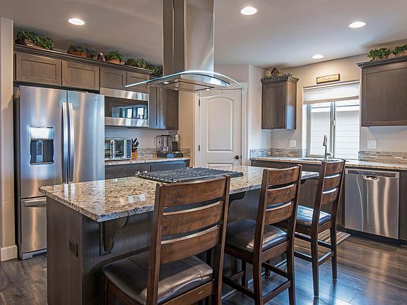 Like new single level home in a convenient location in NE Bend. This great room floorplan features laminate hardwood flooring throughout the main living space, vaulted ceiling and a cozy gas fireplace with stone surround. The open kitchen has quartz countertops, a large island with eating bar, walk-in pantry and a built-in buffet in the dining area. The spacious primary suite features a coffered ceiling, vinyl plantation shutters, double vanity, soaking tub and a walk-in closet with built-ins. Fenced backyard with deck and additional patio space, nicely landscaped and a storage shed for all your extra gear. This home has been well maintained and offers many upgrades throughout. Conveniently located near schools, shopping, medical and Pine Nursery Park.