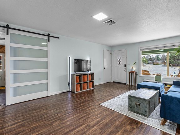 Introducing your new home nestled in the heart of Bend OR! This delightful single-level abode offers the perfect blend of comfort, convenience, and character. Step inside to discover updated LVP floors through out providing durability and easy maintenance for everyday living. The interior welcomes a cozy ambiance with natural light from south facing windows and a solar tube. A new barn door adds a stylish focal point, enhancing the homes unique charm. While this home doesn't have a garage, it does have a gated covered carport with ample storage space and a separate storage shed. Chicken run, built up garden beds, wild flowers and flowering trees make ending the busy day a delightful way to unwind. With it's charming features and great location + ample space for your green thumb to flourish and enjoy all your hobbies, it's the perfect place to call home. Schedule a showing today and discover the endless possibilites awaiting you! Small RV or boat parking allowed. No hoa's.