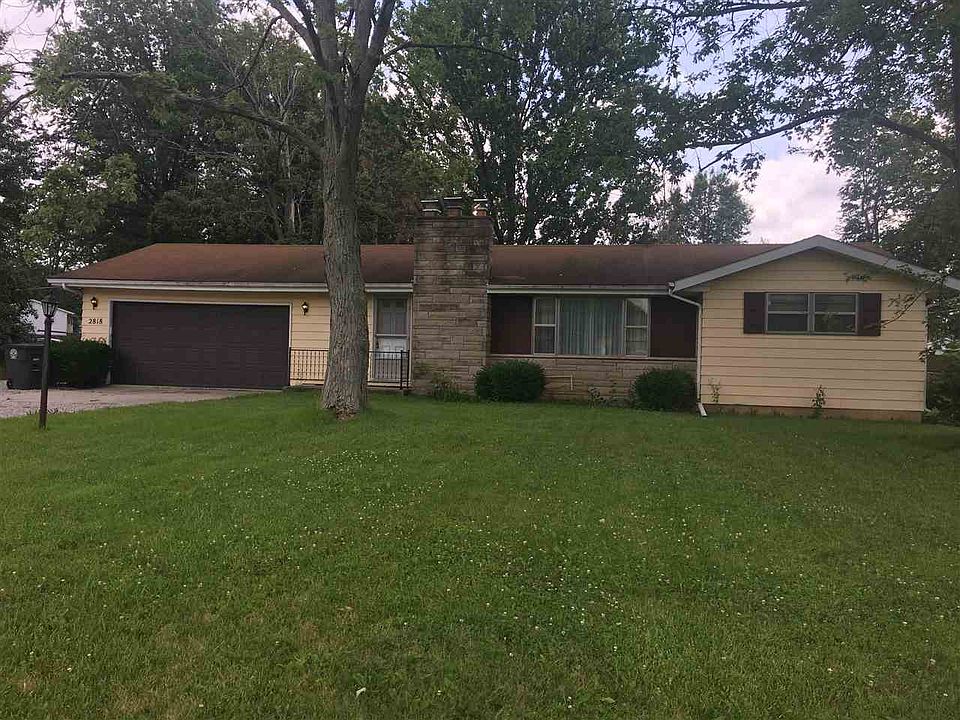 A charming home, nestled on over a half acre lot, within walking distance to schools! The spacious living room features a picture window and fireplace. Newer solid oak cabinets in the eat-in kitchen, which leads to a covered back patio to enjoy your morning coffee. Both bedrooms feature original hardwood flooring. One full and one half bath. Large, fenced-in yard with shade trees, covered porch and plenty of room for kids and pets to play. There is a full basement (a new back wall was poured in 2018) which could easily be turned into another living area. Two car attached garage. Most of the home was painted in 2017. All appliances remain, but are not warrantied. Great Location! Close to schools, shopping and the new YMCA! Home is being sold "As Is."
