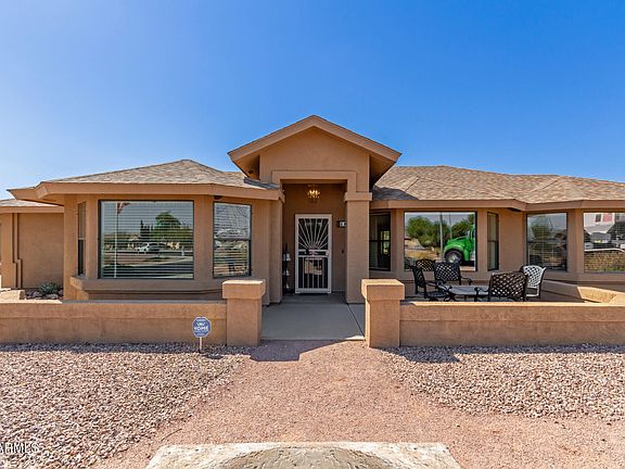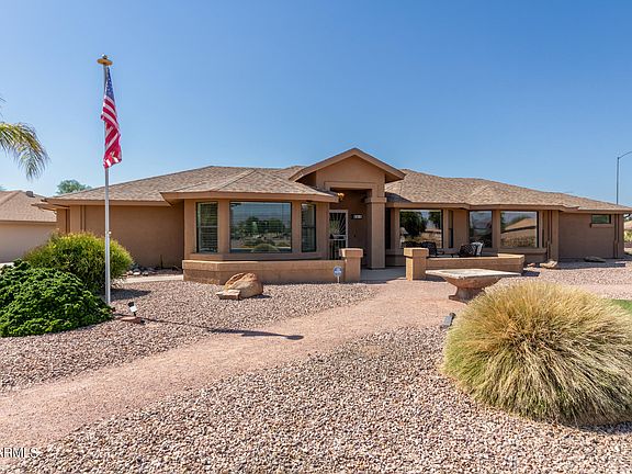 This one of a kind custom home is situated on a large corner lot in SSV, one of Mesa's popular 55+ golf course communities! This layout is a rare find! Lots of natural light and views of the Superstition Mountains from the main living area and your bedroom. This 3 bedroom, 3 full bath home has been meticulously cared for and is move in ready. All tile, vaulted ceilings, neutral paint, and spacious rooms. The kitchen has matching black SS appliances, a breakfast bar and luxurious granite counter tops! The master suite has two closets and a freshly remodeled bathroom with a walk in shower. Beautifully maintained desert landscaping, turf and citrus trees! Newer A/C, a water softener and electric, retractable awnings for additional shade in the back yard. Extended patios and much more!