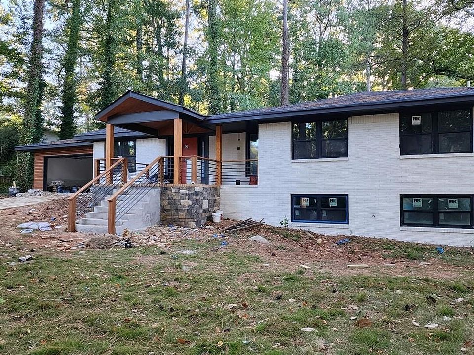 "Stunning Executive Split-Level Home will be Ready end of May 2024". The entire interior is New Construction "not" renovated. In addition, Permitted by the City East Point. The builder removed the entire interior as it was an Empty Shell.....BRAND NEW ALL "Walls/Studs/Floor Joists" from the top to the bottom of this dwelling from side to side was removed, an empty shell remained. Brand New Roof, New Floor Joist on main level, All 4 walls to include room wall studs are brand new studs/wood, New Rough-in Electrical from floor to ceiling. New Plumbing Rough-in. The entire HVAC is new rough-in/Ducts and furnace/outside condensers are brand new. All interior insulation in these walls/attic are new. Again every step has been permitted. The drywall is brand new as well as the all the flooring. We are offering you a 98% Brand New Structure. The Scenic is just as good or better as a 100% Newly Constructed home interior is ALL BRAND NEW. This Split Level offers........ Full Wet Bar for Entertaining.........Home Theater.......Gym........... Located well desirable area blocks from the popular “Downtown District of East Point."  Exquisite levels of high-end finishes! 4 side brick.  The main level offers an extra-large open-concept great room with a vaulted ceiling and custom wood beams. 2-story fireplace. Real Natural Hardwood floors thru out main level. The designer kitchen offers beautiful cabinetry and a beautiful waterfall quartz countertop. ***All Major Kitchen Appliances will be Kitchen Aid***The primary suite is on the main offers his and her closet, spa-like bath and shower with large format tile and rich wood furniture cabinetry. There are three additional bedrooms you can customize to your own taste. All metal staircase windows, and airy high ceiling throughout. Covered outdoor living areas with a large backyard. The terrace level is an entertainer's delight with a designer full wet bar (wine/dishwasher), home theater, bedroom, full bathroom, and gym. Private terrace patio to another outdoor covered living space.