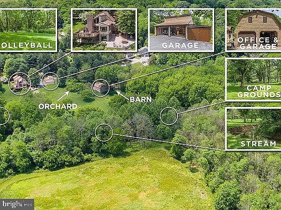Welcome home to endless opportunities in this one of a kind, private oasis~.The pride of ownership throughout this decadent custom built residence sprawling over 11+ beautiful acres of bountiful green pastures, 2 meandering streams, and features your very own private rustic retreat/campground area is evident from the moment you arrive. Your new full time retreat is also complimented by an abundance of storage areas & plenty of parking along the 4 car overflow spaces, 2 car detached garage, or even in the 3 year young Barn/Workshop, as well as an additional small barn which housed a horse and is now being used as a large work shed and basketball court. Simply walk into the main residence to be pleasantly greeted daily with soaring cathedral ceilings featuring exposed wood beams and surrounded with large picturesque windows throughout that provide an abundance of natural light & serene views from every room. The main level offers a grand living room with sparkling wood floors, wood burning fireplace, access to the wrap around deck, country kitchen with custom cabinetry and spacious eating area with simply breathe taking meadow views. While this home features 5 spacious bedrooms, 3 of which are located on the main level, and each level featuring it's own full bath. Journey up a level to enjoy a private master suite with a spacious sitting area. Your master suite features a master bath, separate whirlpool tub, private balcony & sitting area, plus 2 skylights above your bed where you may enjoy the views of clear star light night skies. As if this was not enough, this home also features a fully finished, walk out lower level in-law suite that has zero steps for your loved ones to be able to enjoy the comfort of easy living. The in-law suite features your own spacious living room, pellet stove, complete kitchen, bedroom, plenty of storage, windows & sliding glass doors offering an abundance of natural light, and an easy walk in tile shower in the full bath. Simply step just outside and enjoy the priceless views of your green meadows, mature trees, from your private patio which is the perfect way to end or begin any day. The three additional structures on the property include: a) a spacious 2 car detached car garage with attached storage shed on side and additional storage throughout; b) a 3 year young Barn/workshop with finished upper level with endless possibilities and an additional convenient half bath; c) Plus an additional 2 level work shed that may be used for anything your heart desires or needs to compliment your new chapter of life. If that wasn't enough, the roof is brand new! This is where your new journey begins, welcome home! (+non functional Half bath in barn)