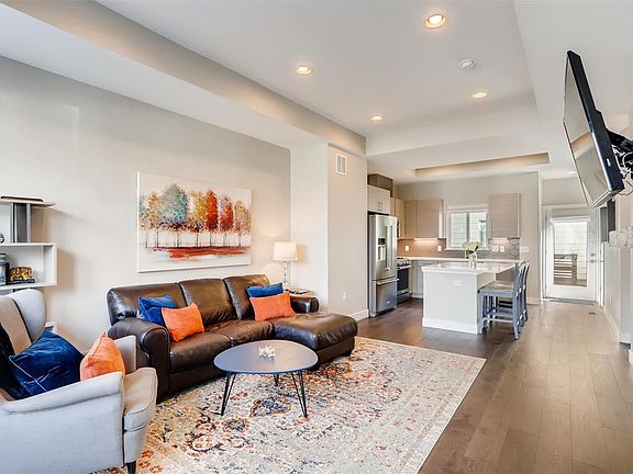 FANTASTIC LIKE NEW 3 BEDROOM, 3 1/2 BATH TOWNHOME IN POPULAR ARIA. MODERN HOME WITH TERRIFIC ARCHITECTURAL DETAILS. OPEN CONCEPT WITH FLOOR TO CEILING WINDOWS FOR TONS OF NATURAL LIGHT. GREAT CURB APPEAL WITH FRONT PORCH/COURTYARD AND GARDEN AREA. BEAUTIFUL HARDWOOD FLOORS ON MAIN FLOOR. CHEF'S KITCHEN WITH QUARTZ COUNTERS AND ISLAND, STAINLESS APPLIANCES, MODERN CABINETS, AND TILE BACKSPLASH AND WALK-IN PANTRY. GREAT ROOM WITH ELEGANT SHIPLAP AND STONE FIREPLACE. PERFECT HOME FOR ENTERTAINING. UPSTAIRS MASTER SUITE WITH 4 PIECE BATH, QUARTZ COUNTERS, DUAL VANITIES. SECOND BEDROOM WITH 3/4 GUEST BATH. FINISHED BASEMENT WITH REC ROOM, 3RD BEDROOM AND 3/4 BATH AND LAUNDRY ROOM. BACKYARD COURTYARD. 1 CAR DETACHED GARAGE. 5 STAR ENERGY EFFICIENT HOME WILL HELP SAVE ON ENERGY BILLS. LOCATED ACROSS THE STREET FROM REGIS UNIVERSITY AND CLOSE TO DOWNTOWN DENVER. NEWER AND TURN KEY! MUST SEE!