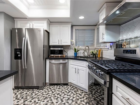 2-1 RATE BUY DOWN AVAILABLE! VILLA MIRA COMMUNITY HAS BEEN RE-PIPED AND IS FHA APPROVED! This stunning home has been upgraded from top to bottom with state-of-the-art amenities and the latest design trends. Enjoy the privacy of this ground level two bedroom and two full bath condo with one of the largest patios per square foot. OVER $75,000 in recent upgrades, including whole unit Anderson Window replacement with a 30 year transferable warranty, remodeling of floorplan in the kitchen and primary bathroom, and new AC and furnace and newer water heater. BRAND NEW TOP OF THE LINE LG WASHER AND DRYER JUST INSTALLED THIS WEEK! The designer kitchen was transformed to open into the dining area - new cabinets and black quartz countertops, designer tile backsplash behind the 5-burner range, large stainless sink with a hot water tap with filter, stainless appliances and updated ceiling with recessed lighting. New Luxury Vinyl flooring and crown molding throughout, new lighting including recessed, new window blinds, doors and all fixtures, plus all electrical including outlets, light switches and covers have been replaced. Both bedrooms have new luxury carpet flooring, and mirrored closets with organizers. The primary bedroom with ensuite has been transformed into a luxurious retreat. This total redesign features a stunning glass shower with thick panels, an upgraded showerhead, and elegant designer tile with a recessed shelf. You’ll be impressed by the Novita bidet, complete with new electrical connections, and a Bluetooth LED mirror with a smart panel. The space also boasts quartz countertops, slate flooring, and a stylish barn door for added privacy. The secondary bedroom has its own entry door to the private covered patio. Adjacent to the secondary bedroom is a full bathroom that has also been completely remodeled from top-to-bottom. The floorplan flows effortlessly upon entry and has a built-in bookshelf, a storage cabinet with new doors, and a living area with versatile seating options. A brand-new slider door opens to the private covered patio with Spanish pavers and new turf. With no view of neighbors and located against a slope, this home has a great patio for al fresco dining under solar lighting. Convenient parking in the single car garage plus up to two additional permits for parking. Villa Mira is one of the most sought-after places to live and has two pools and spas, a remodeled clubhouse with banquet facilities and lounge area. No Mello Roos. Hot Buy!!