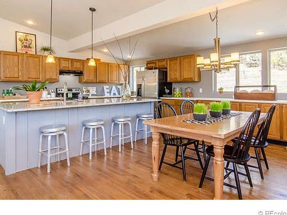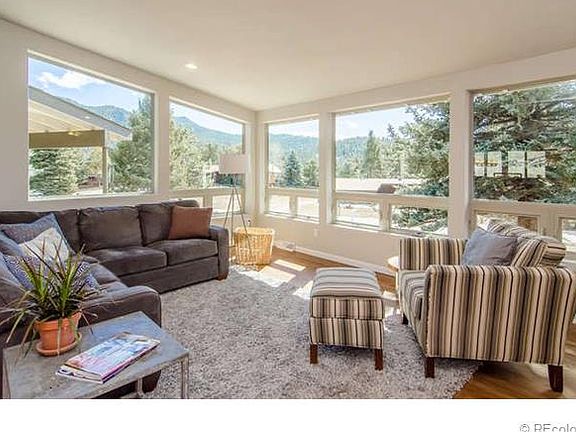 This bright, open, and beautifully remodeled home in the popular Hiwan Village neighborhood is just minutes from amenities, downtown Evergreen, and within walking distance to Evergreen???s most popular brew pub. The renovation included building an addition, vaulting the ceiling, and completely reconfiguring the kitchen, dining and living area into a wonderful expansive great room for today???s style of living. The mid-century style home has a large granite kitchen island, an abundance of kitchen cabinets, and new large south-facing windows. The great room includes an artsy office nook, in addition to the two bedrooms upstairs. The owners were originally going to live in the home and spared no expense in putting in new plumbing and electrical, new hot water heater, new hardwood floors, cam lighting and much more. Downstairs enjoy the two additional bedrooms and a large den/rec room, laundry area and unfinished storage area. All this on a lovely large lot with southern exposure and views!