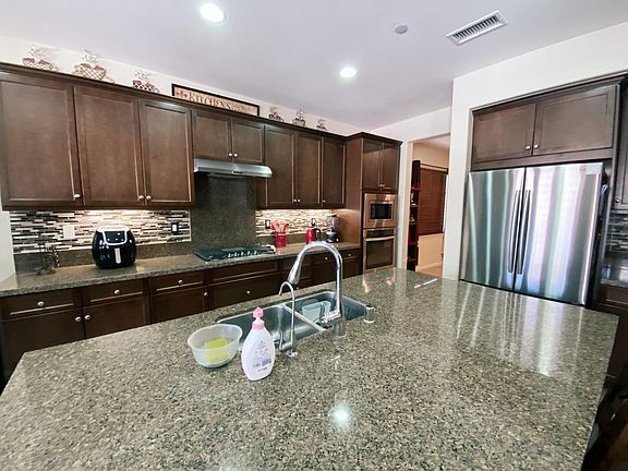 Avaliable on August 1ST BEAUTIFUL HOME in Highly Desirable HERITAGE LAKES in MENIFEE 5 Bedrooms, 3 Full Baths, 2711 Sq. Ft., 3 Car Tandem Garage located in the amazing Heritage Lakes with a 25 Acre Lake, 2 swimming Pools, Splash Park, Community Dock for Paddle Boarding, Fishing, Clubhouse & Tot Lots. You will love this open concept Floorplan with a Huge Kitchen with Island, Wine Refrigerator, Granite Counters, Stainless Steel Appliances & Water Softener overlooking the spacious Family Room and Backyard. There is a Downstairs Bedroom, Full Bath & Office, making it a perfect place for guests or an office room. The upstairs has a large Master Suite overlooking the Backyard, two separate walk-in Closets, Double Sinks, a Walk-In shower, and a separate soaking tub. There are 3 additional spacious bedrooms upstairs and a Laundry Room. The Garage is fully finished with Beautiful Floors and 3 car tandem garage. This home has lots of upgrades, including a Surveillance System too. You will love this large backyard with a Built-In Covered Patio, tons of room to entertain, and plenty of room to build a Pool, Spa, or anything you can Dream Up. No showing untill August 1ST.