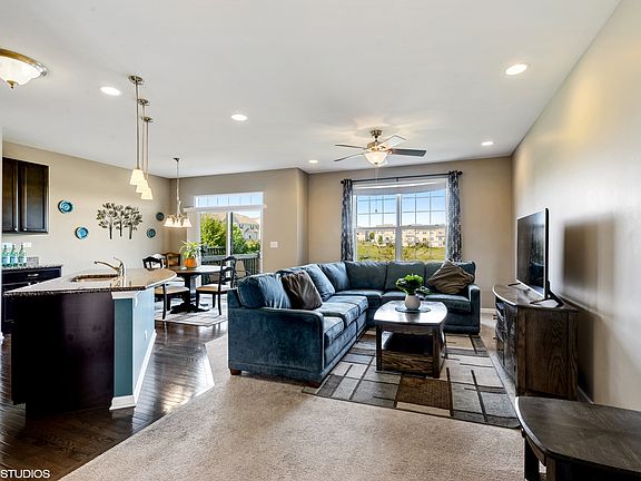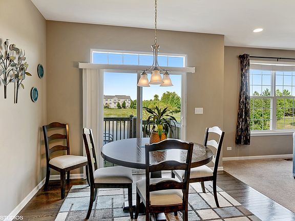 Relax and enjoy POND VIEWS from this wonderfully upgraded three bedroom townhome. Gourmet kitchen has upgraded cabinets, granite counters and SS appliances & opens to dining area/ family room with peaceful water views from every window! Chef's dream walk-in pantry. 9 ft. ceilings on main level, custom trim, upgraded carpeting and on-trend wood flooring throughout main level. Second story has 3 large bedrooms including luxurious main bedroom with vaulted ceiling & upgraded vanity, large shower, and linen closet. Window in closet lends itself to a cozy workspace. English lookout basement backs to pond with bath rough-in; it awaits your dream recreational space. Located in BATAVIA school district 101! A terrific home so close to shopping, dining and I-88 expressway! It is time to move in this turn-key, lovely home, maintenance-free lifestyle - Show with confidence.