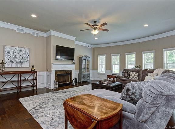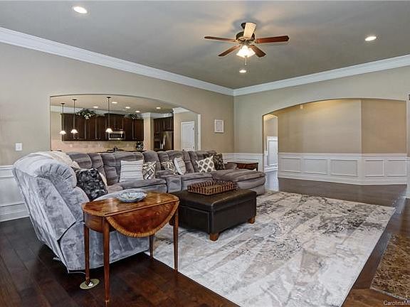 Stone and brick accented transitional features wide plank wood flooring, arched doorways, staircase with iron balusters and extensive crown & picture frame moldings. French doors frame the inviting study with bay window & coffered ceiling. Large great room boasts a curved wall of windows & wood burning fireplace with marble surround. Designer kitchen has rich espresso cabinets, granite countertops, tile backsplash, and extended bar seating. Generous owner's suite includes a sitting room and tiled bath with dual walk-in closets, garden tub, tiled shower & granite topped double vanity. Huge bonus/media room has a curved wall of windows and wet bar with fridge & microwave. A covered patio overlooks the privacy fenced back yard with plenty of room for play! Amenity rich community features a clubhouse, fitness room, pool with splash zone, playground, basketball & sand volleyball courts, picnic pavilion & walking trails. HOA Dues include Cable and High Speed Internet.