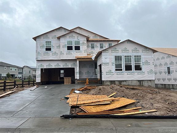 DO NOT CALL SHOWINGTIME- Please call 303-900-3550 option 1 to set a showing. Located in the sought after Macanta neighborhood, this stunning "Aspen" by Lennar Homes that backs to the greenbelt is a must see! A covered front porch greets you as you walk up to the home. The main level features a two-story great room with Leisure Oak EVP flooring, great natural lighting and a gas fireplace. The culinary delight kitchen offers an abundance of counter and cabinet space and boasts stainless steel appliances, white Shaker cabinets, Lyra Quartz counters, 'Ice' subway tile backsplash, a center island and a large walk-in pantry. The large dining room offers EVP flooring and walks out to the included covered deck. A main floor bedroom offers flexible living options and offers ample closet space. A 3/4 bathroom completes the main level. The upper level provides great living space. The large owner's suite features a spacious bedroom, a luxury bathroom with dual vanity, oversized shower, and Cuidad Crème tile flooring. The bath also offers access to a large walk-in closet. Bedroom number two is large and has access to a 3/4 hall bathroom. Two additional bedrooms offer ample closet space and share a Jack-n-Jill full bathroom. The spacious loft offers flexible living options. An upper-level laundry completes this level. The full basement provides great expansion opportunities. Front yard landscaping included. Neighborhood amenities include an incredible pool/fitness center/clubhouse, 13 miles of bikes trails and a 450-acre Macanta Regional Park. Completion November 2022.