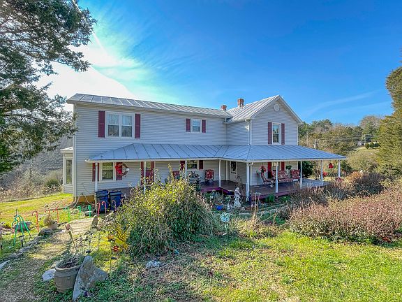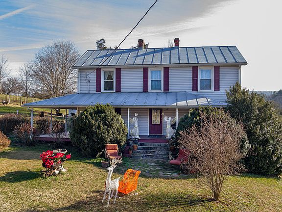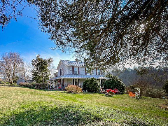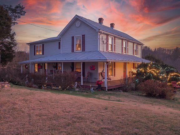 Nestled in the foothills of the Blue Ridge Mtns, this Country Home checks all the boxes! Mountain views, surrounding pastures, meadows and forests. A perfect environment for homesteading. Includes fenced housing for goats, chickens, or other farm animals that you've always dreamed of owning. Super-feature alert!! 24 X 36 workshop with heating unit, power, vacuum set-up, garage door. Many additional storage buildings and fun sheds. The attractive farm house has a custom kitchen that will please the most discerning chef! Spacious, with tons of cherry cabinets, granite counter tops, massive island, 2.5 ovens. Wrap-around porch for sitting out on summer nights, listening to the crickets singing in the silence, watching the fireflies, filling your Soul.