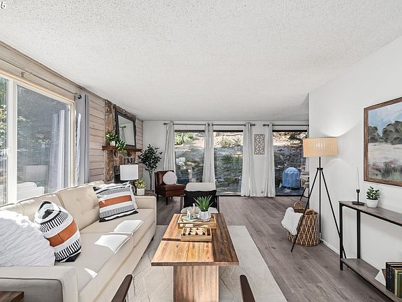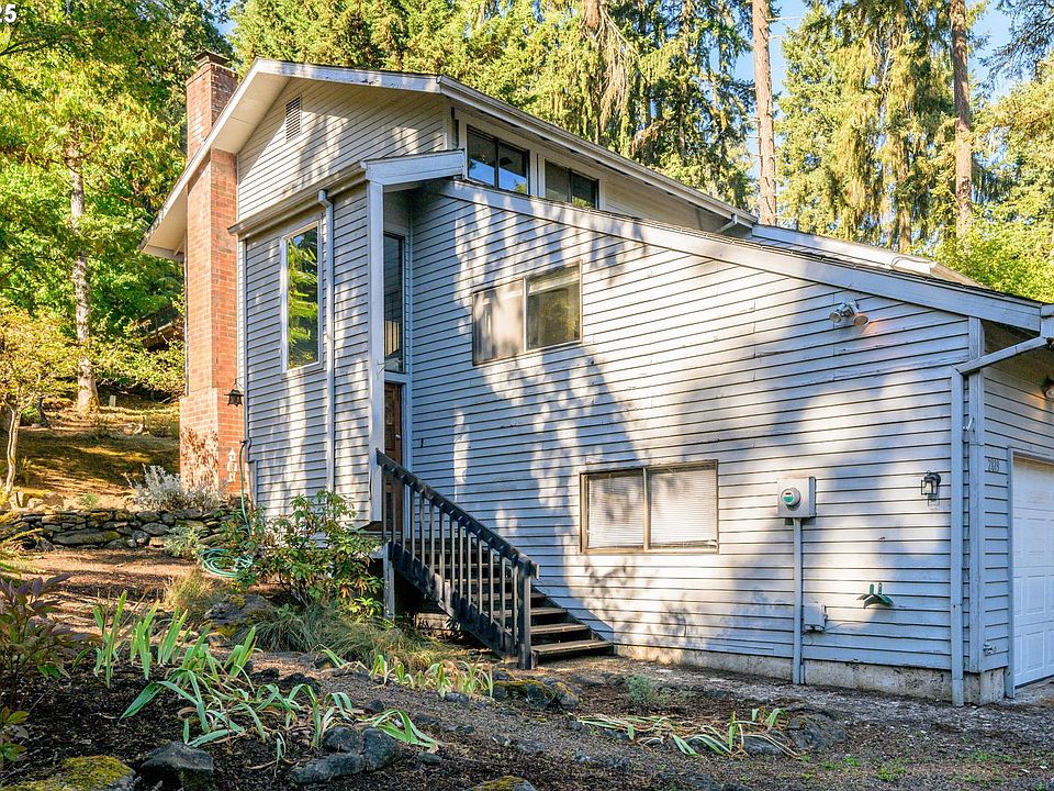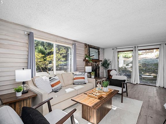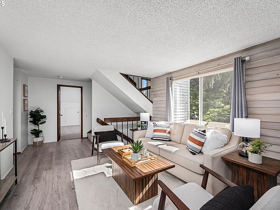 A lovely 3-bedroom in the Southwest Hills, for only $330k? That is correct! This unique tandem home has the space and amenities you need, plus the character you are hoping for. A vaulted entry welcomes with a true Northwest contemporary vibe. The main level flows in a well-designed circular pattern. A warm living room with stone fireplace wraps around to the dining area, and into a functional kitchen with stainless appliances. A bedroom, half-bath and laundry are also on this floor. Step out either slider to a private backyard patio! Upstairs find the generous primary suite, and third bedroom with a shared full bath. Need a garage? You got it! This home has newer luxury vinyl plank flooring in the living areas, and brand new carpet. Situated on a private loop off Timberline Dr., this quiet and natural setting is remarkable and very appealing, with tall trees and good sun exposure. Deer and other wildlife roam freely about. Come see for yourself! So much to love here--at a compelling price.