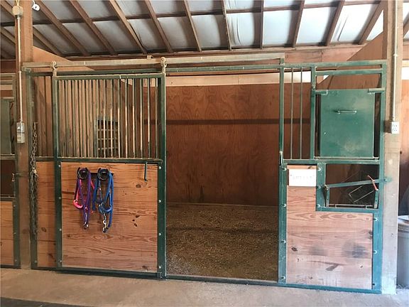 Every horse lovers dream, 29 plus acres ,perfect setting for a hobby farm, Fenced acreage and cross fencing, gates, automatic heated water and two ponds, 120ft arena, with lights, City water to house and barn,separate septic also well , Automatic fly sprayer in barn , 3 stalls with auto water,space for 5 horses, tack room, feed storage, half bath, 6 rubber mats, large on demand hot water tank, large wash area. Each end has Large roll up doors, Large culvert and railroad ties to direct water .