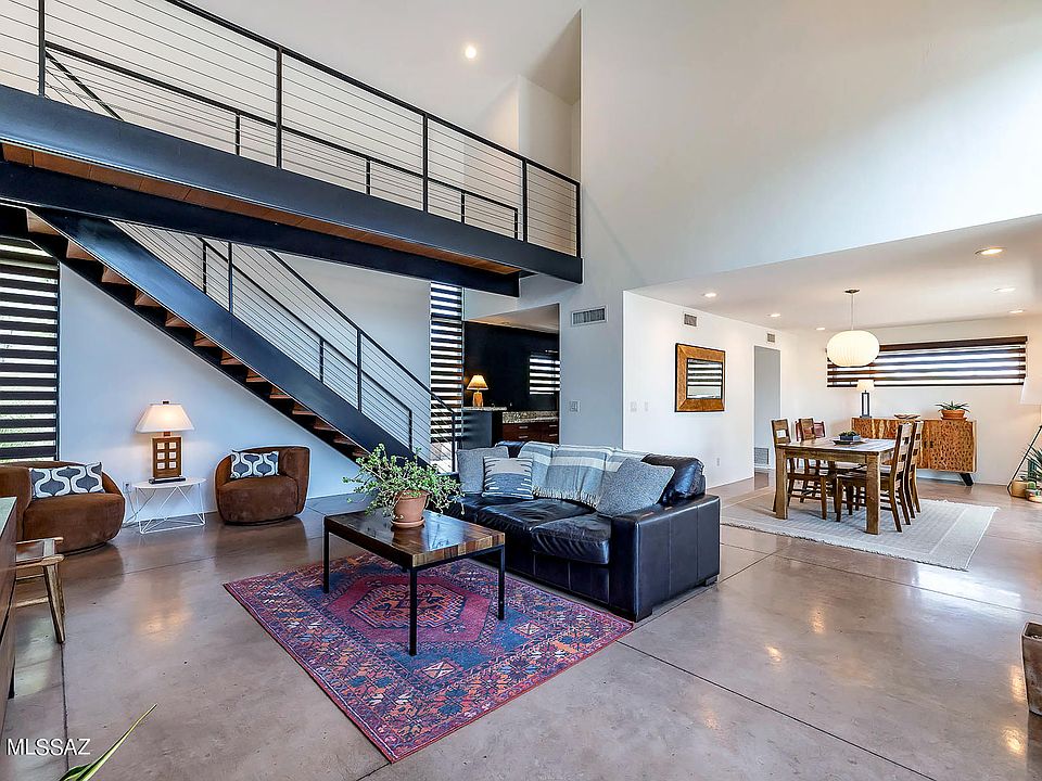 * Welcome to this elegant, stylish contemporary home! Designed by nationally acclaimed architect Rob Paulus, this house offers dashing presence with its open floor plan, wall size windows with modern and unique window coverings, great light with nice views of Catalina mountains. It has been immaculately maintained and is completely move in ready. Graceful stairs will lead you to spacious bedrooms, smart split floor plan allows for privacy to all. Wonderful finishes throughout to include scored colored concrete, wood & travertine flooring, granite counter tops in kitchen & bathrooms, all new LED lights, landscape lights and more! New HVAC unit, new water heater, new interior paint. Excellent location - minutes from TMC, various amenities, parks and The Loop. List of updates uploaded on MLS.